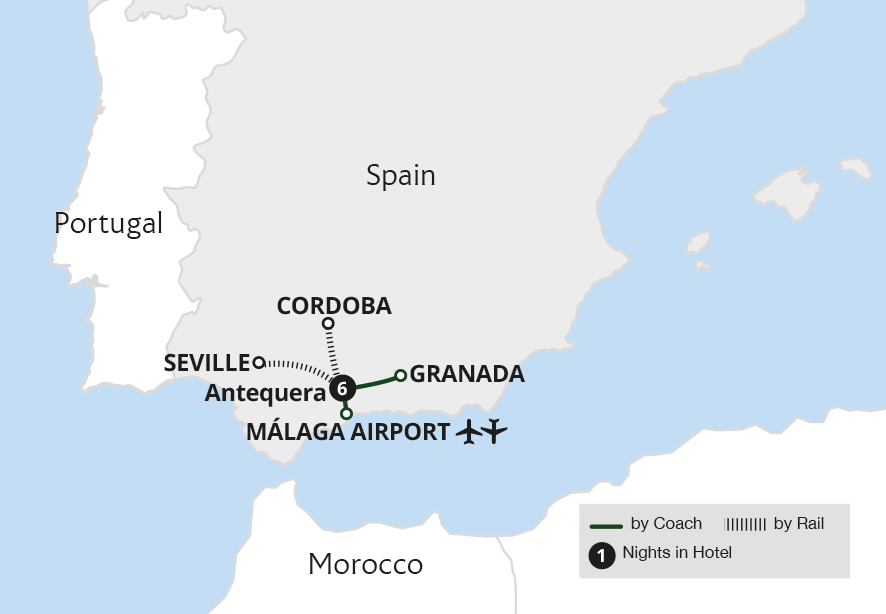 • Journey from the capital of Madrid, into Moorish Andalucía and Barcelona