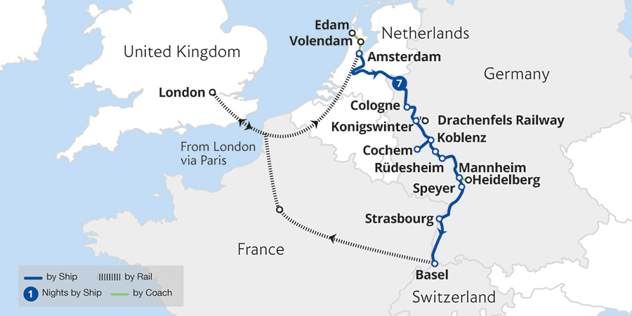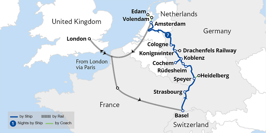 Embark on a scenic river cruise from Switzerland to Amsterdam, uncovering enchanting landscapes on the way, including the UNESCO-listed Rhine Gorge, adorned with stunning castles, lush forests and sprawling vineyards. Sail from Switzerland to the Netherlands, drifting by forested valleys and charming riverside villages while enjoying guided...