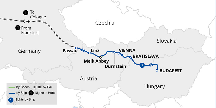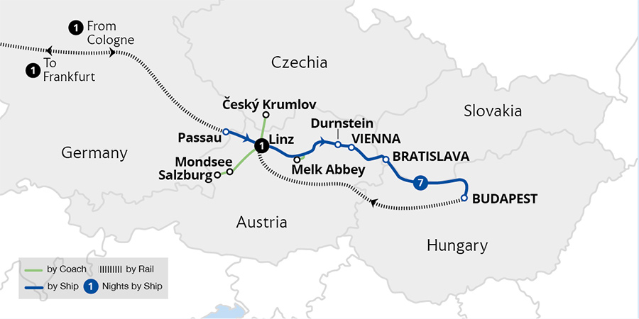 Enjoy a leisurely cruise through four countries and three capital cities, basking in beautiful river scenery all the way. Sail from the German town of Passau through the Austrian wine-growing region of the Wachau Valley, admiring picturesque Dürnstein and Melk Abbey enroute. After exploring imperial Vienna, the captivating Hungarian capital of...